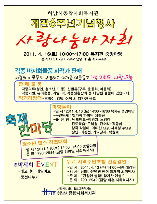 개관6주년 기념행사 "사랑나눔바자회"에 초대합니다.