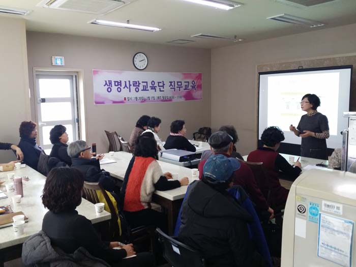 연중일자리사업 생명사랑교육단 직무교육을 1월부터 2월까지 총 5회 실시하였습니다. 참여자 10명 전원 참석하여 활동의 전문성과 수행능력을 높일 수 있었습니다. 생명사랑교육단 참가자들의 원활한 활동을 기대해봅니다.