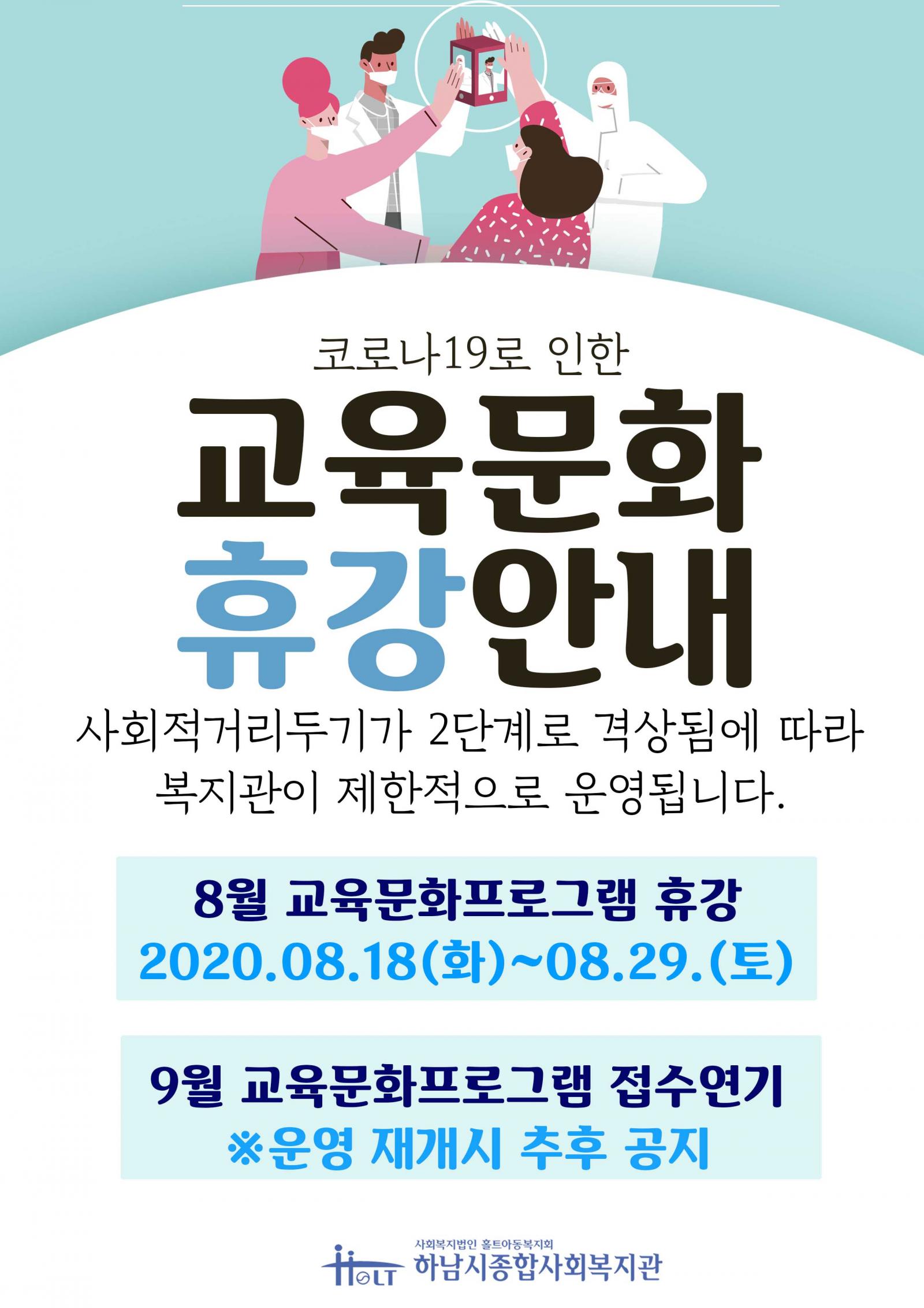 이에, 현재 진행 중인 프로그램 및 9월 접수는 잠정 연기됩니다.