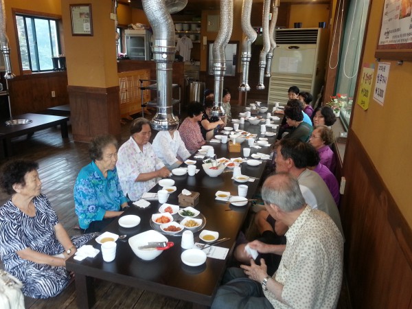 매월 1회 (14.08.30) 지역사회의 어르신들에게 따뜻하고 정성스러운 식사를 대접하여 독거어르신 들의 소외감을 감소시키고 정서적인 안정을 통한 일상생활에 도움이 될 수 있도록 지원하는 사업을 진행하고 있습니다. 이번 프로그램 진행시에는 저소득 어르신 들과 더불어 지역사회를 위해 봉사하시는 어르신들을 함께 초청하여 30여명의 어르신들에게 지원하였습니다.