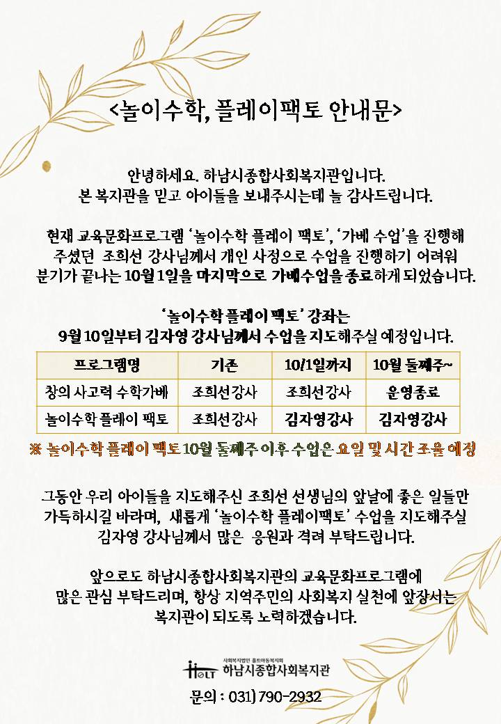 가베강사님은 모집되지 않아 운영이 종료되며, 가베수업과 비슷한