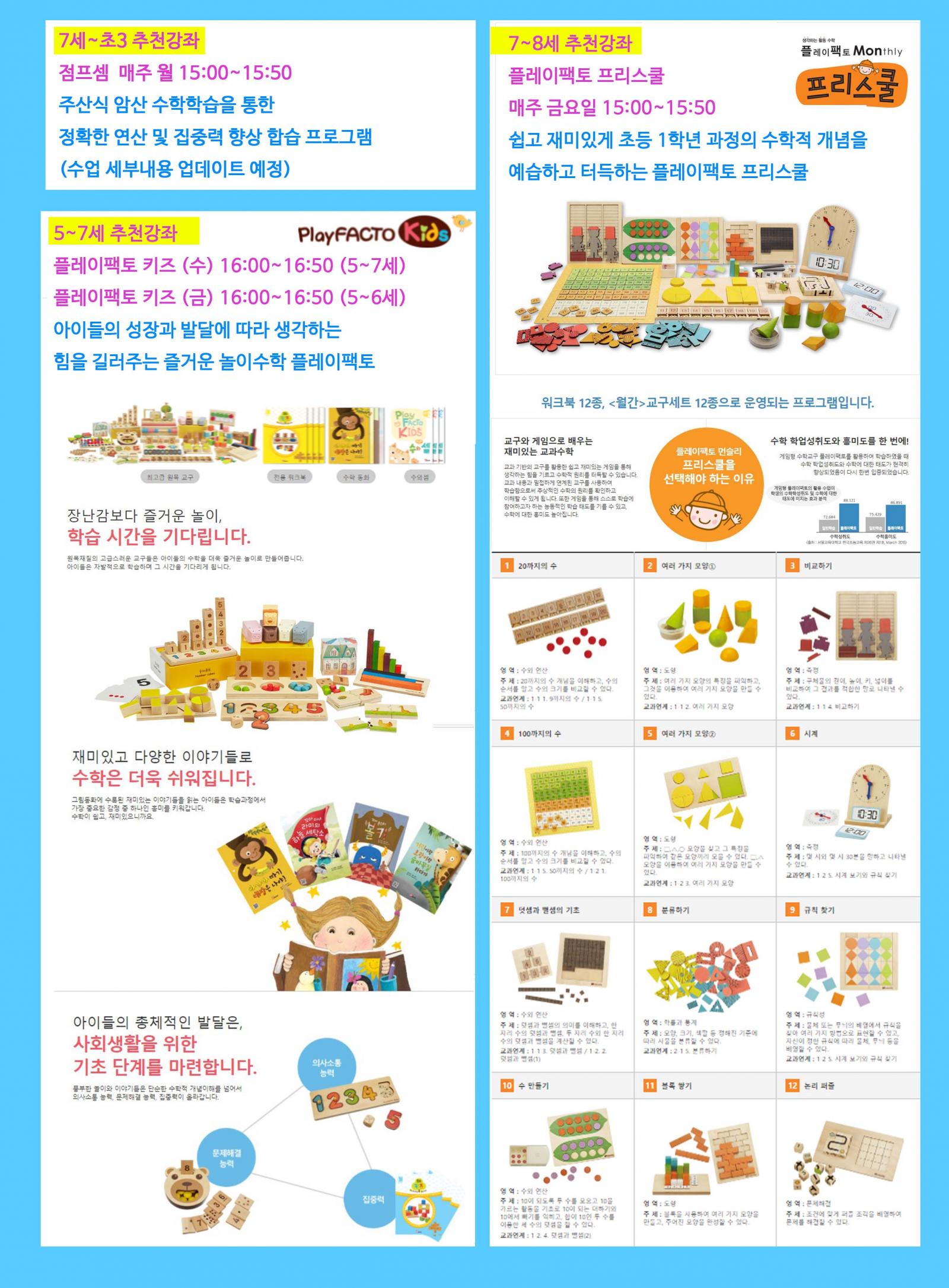 10월 둘째주부터 새롭게 개강하는 놀이수학 플레이팩토 강좌의