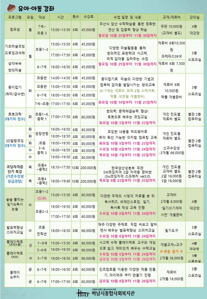 [10~11월 개강 및 접수일정안내]