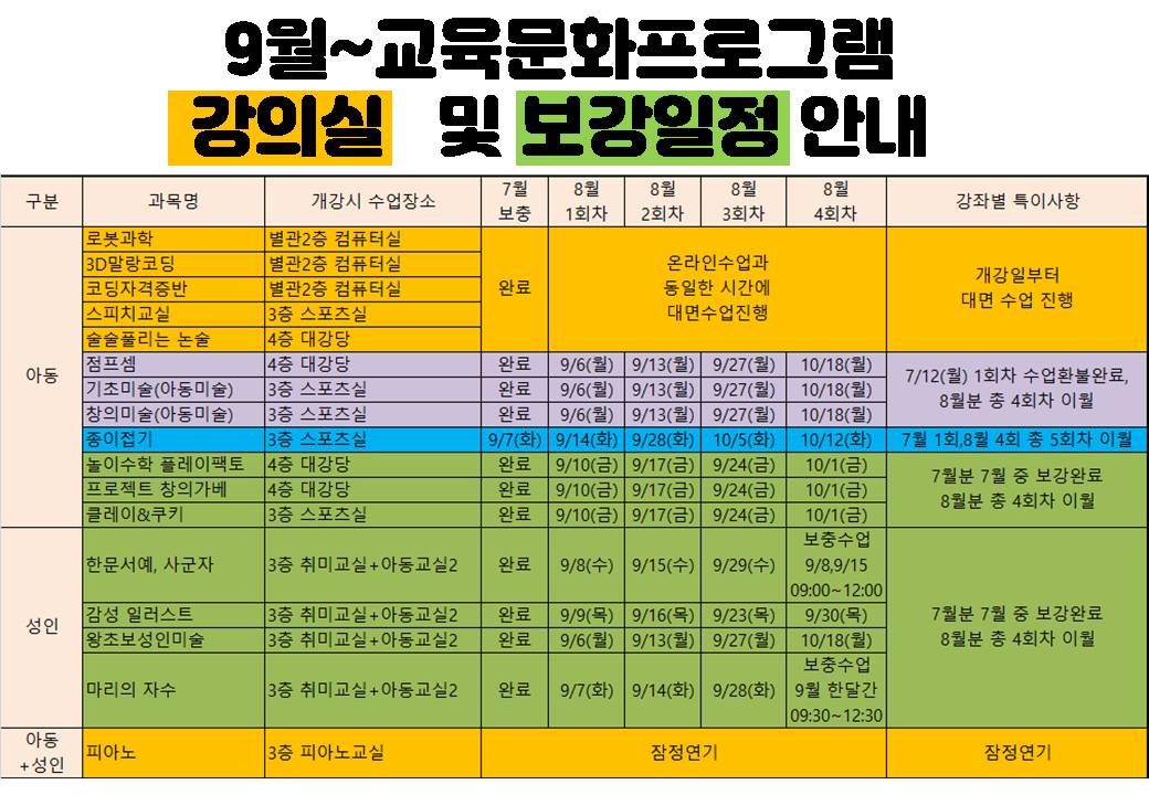 (8월분 보강 일정은 하단 참고)