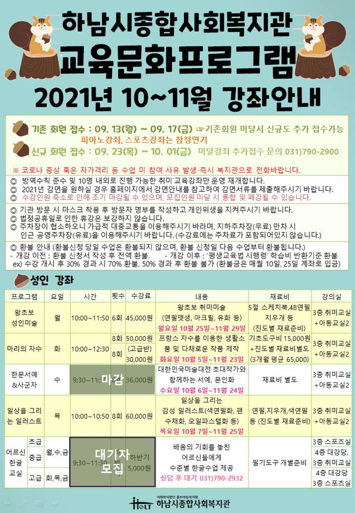 [교육문화 10~11월강좌 추가모집 안내]