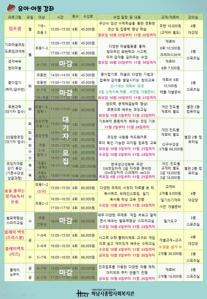 모든 강좌는 보강 완료일 이후부터 11월까지의 수업을 접수합니다.