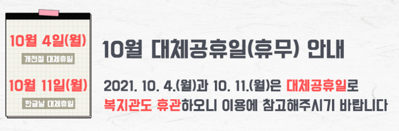 2021.10.04(월), 10.11(월)은 대체공휴일로