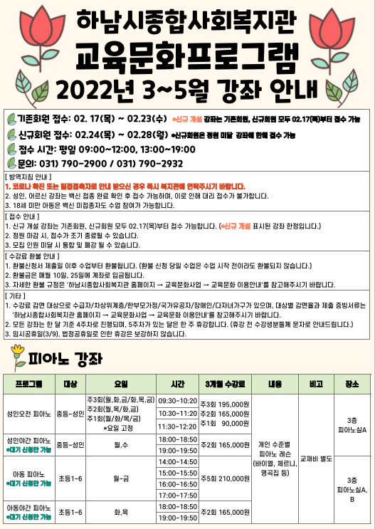 * 기존회원 접수: 2/17(목)~2/23(수)