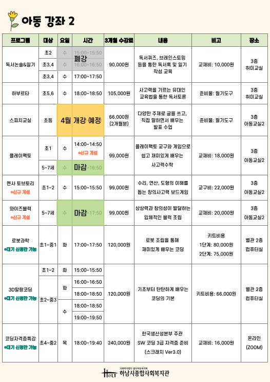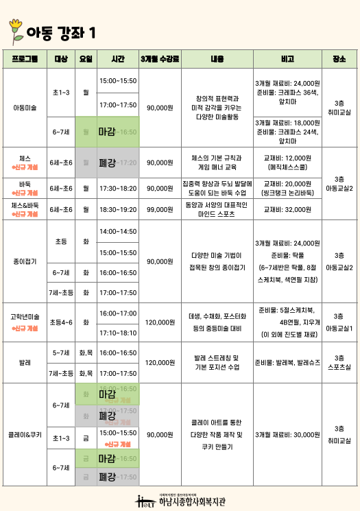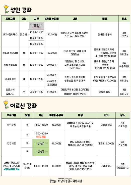 (아래 정보는 실시간으로 업데이트 되지 않습니다. 실시간 마감 강좌는 031-790-2900 / 031-790-2932로 연락주시면 확인 가능합니다.)