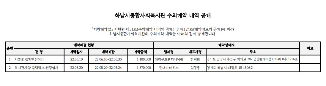 2022년 5~6월 수의계약 내역을 붙임과 같이 공개합니다.