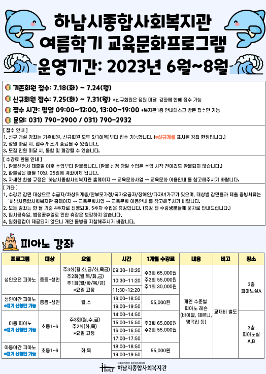 * 기존회원 접수: 7/18(화)~7/24(월)