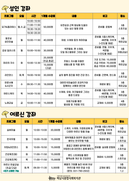 신규회원은 강좌별 잔여인원에 한해 접수 가능합니다.