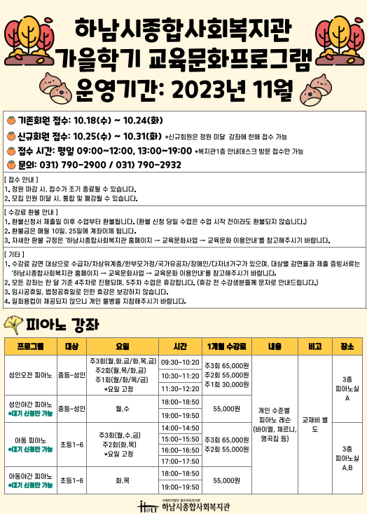 * 기존회원 접수: 10/18(수)~10/24(화)