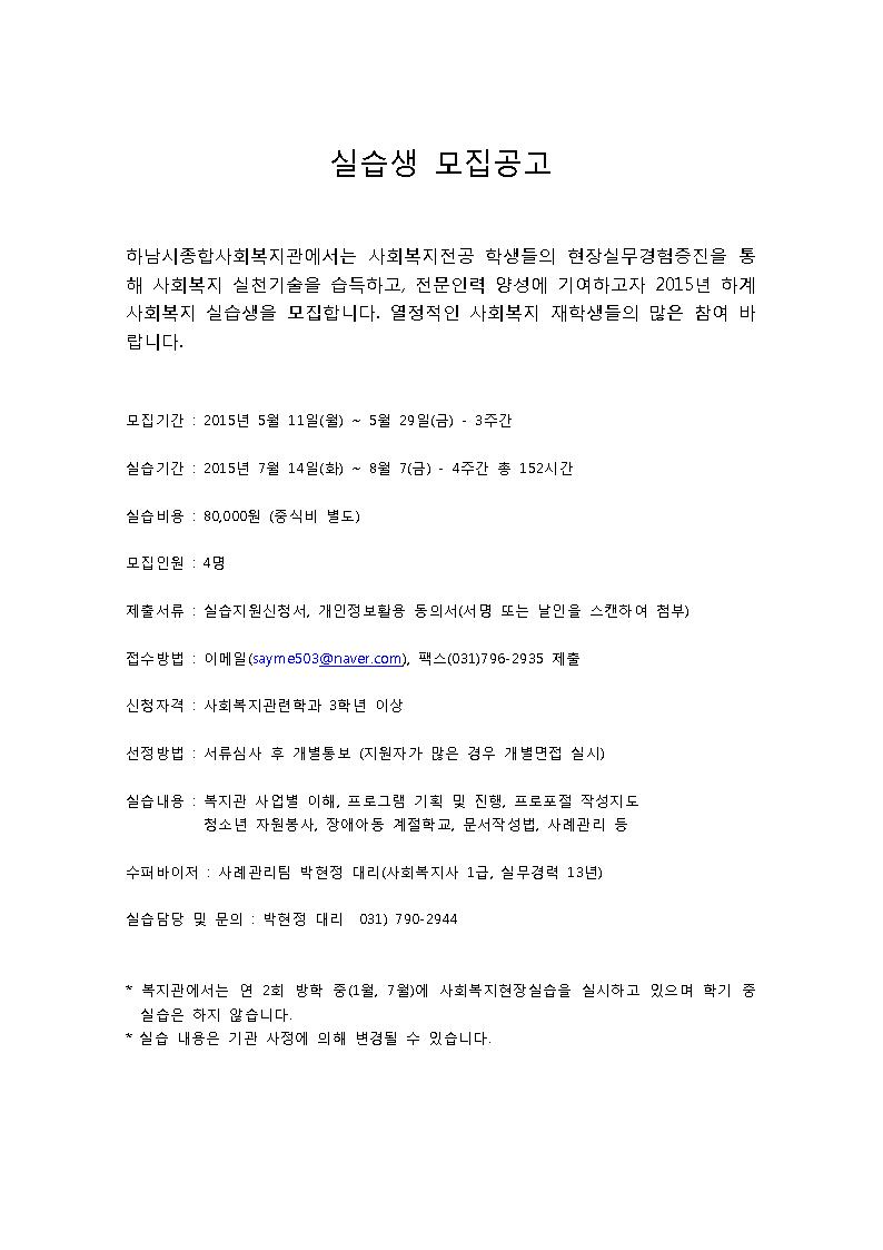 2015 하계 실습생 모집공고