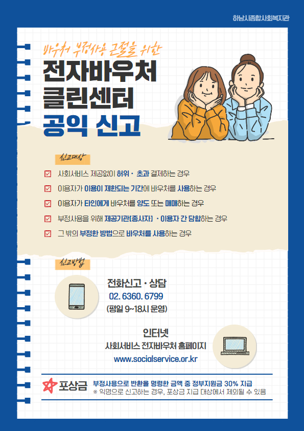 - 신고방법 : 인터넷(전자바우처 클린센터), 우편, 방문, 팩스 등