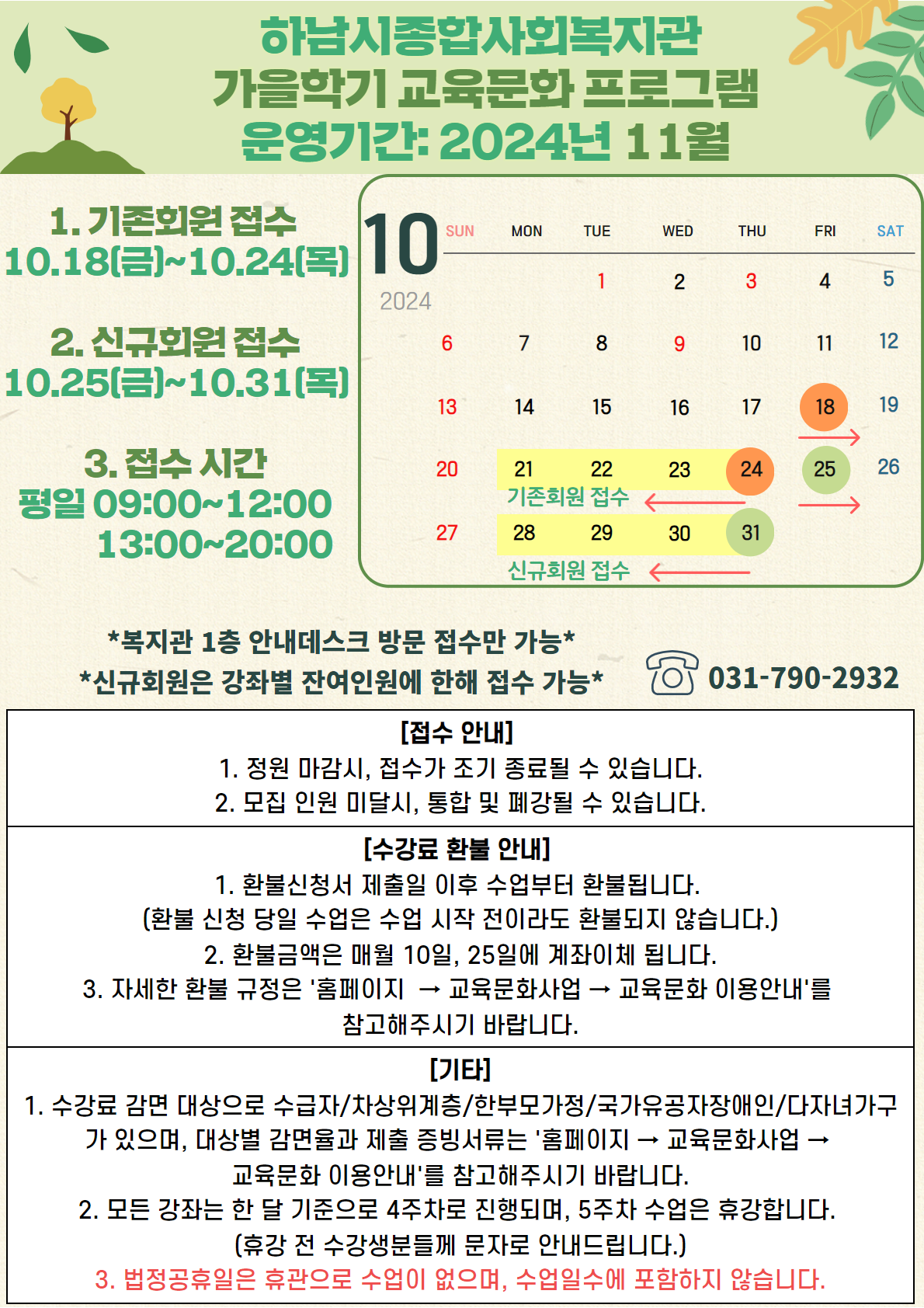 * 기존회원 접수: 10/18(금)~10/24(목)