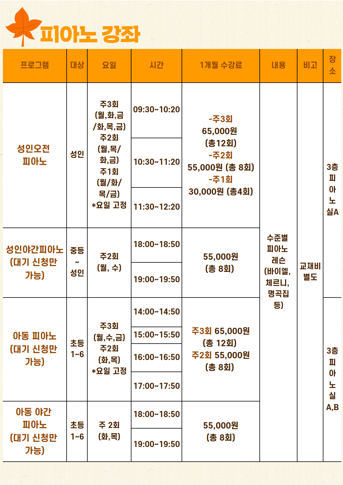 신규회원은 강좌별 잔여인원에 한해 접수 가능합니다.
