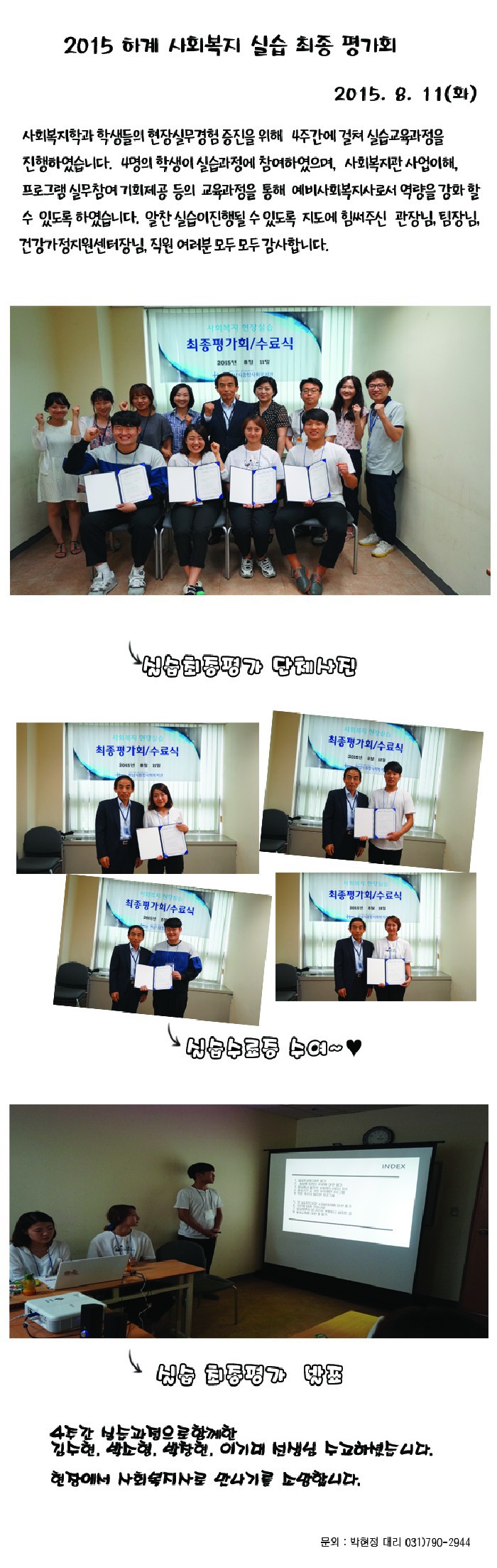 하남시종합사회복지관 실습시도는 연2회 방학중에 실시됩니다.