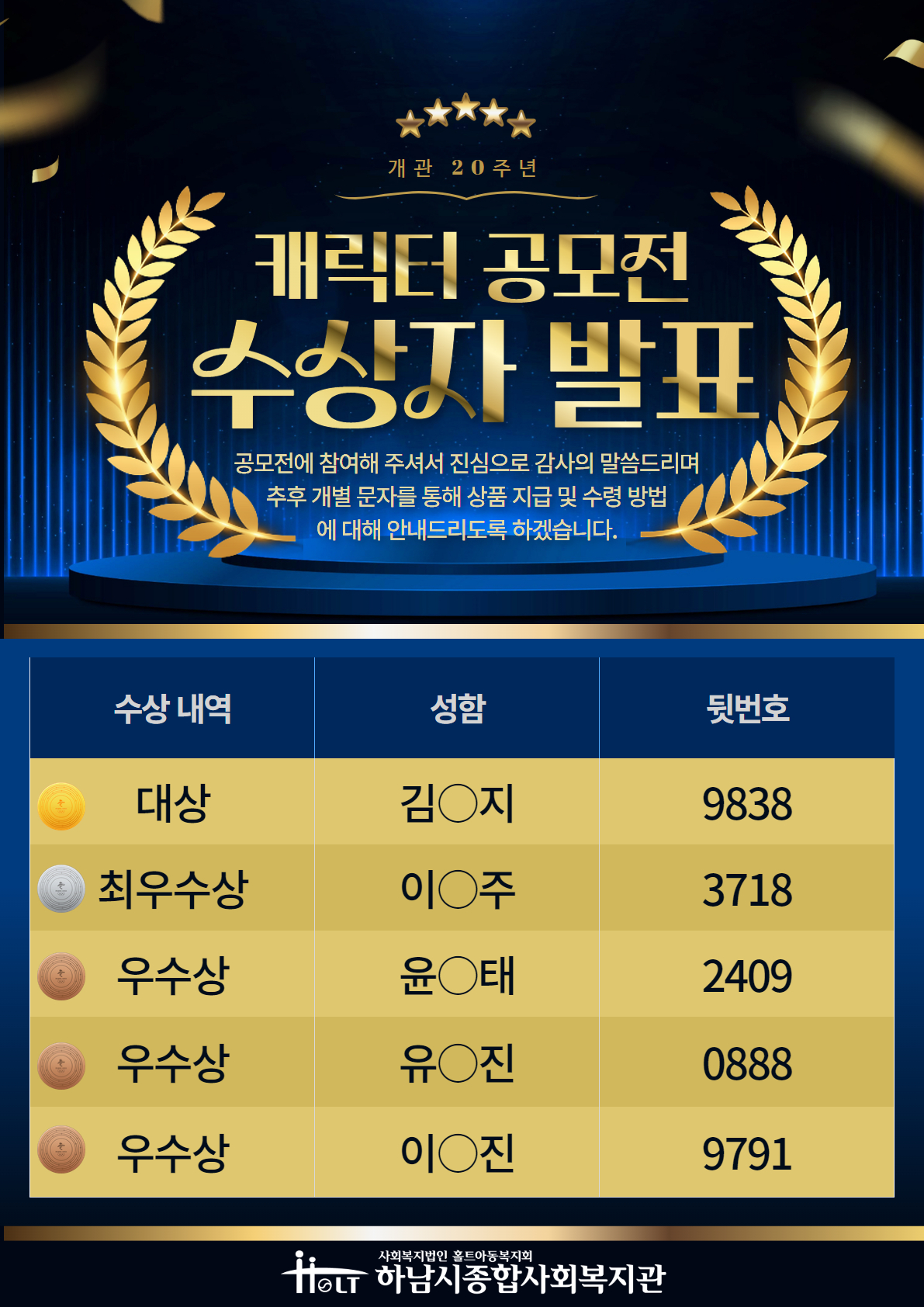#캐릭터공모전 #수상자발표 #대상 #최우수상 #우수상
