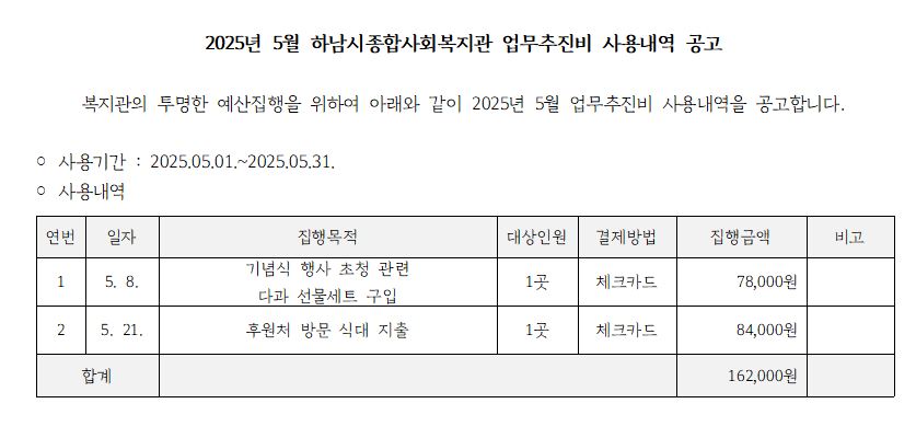 2025년 5월 업무추진비 내역 공개