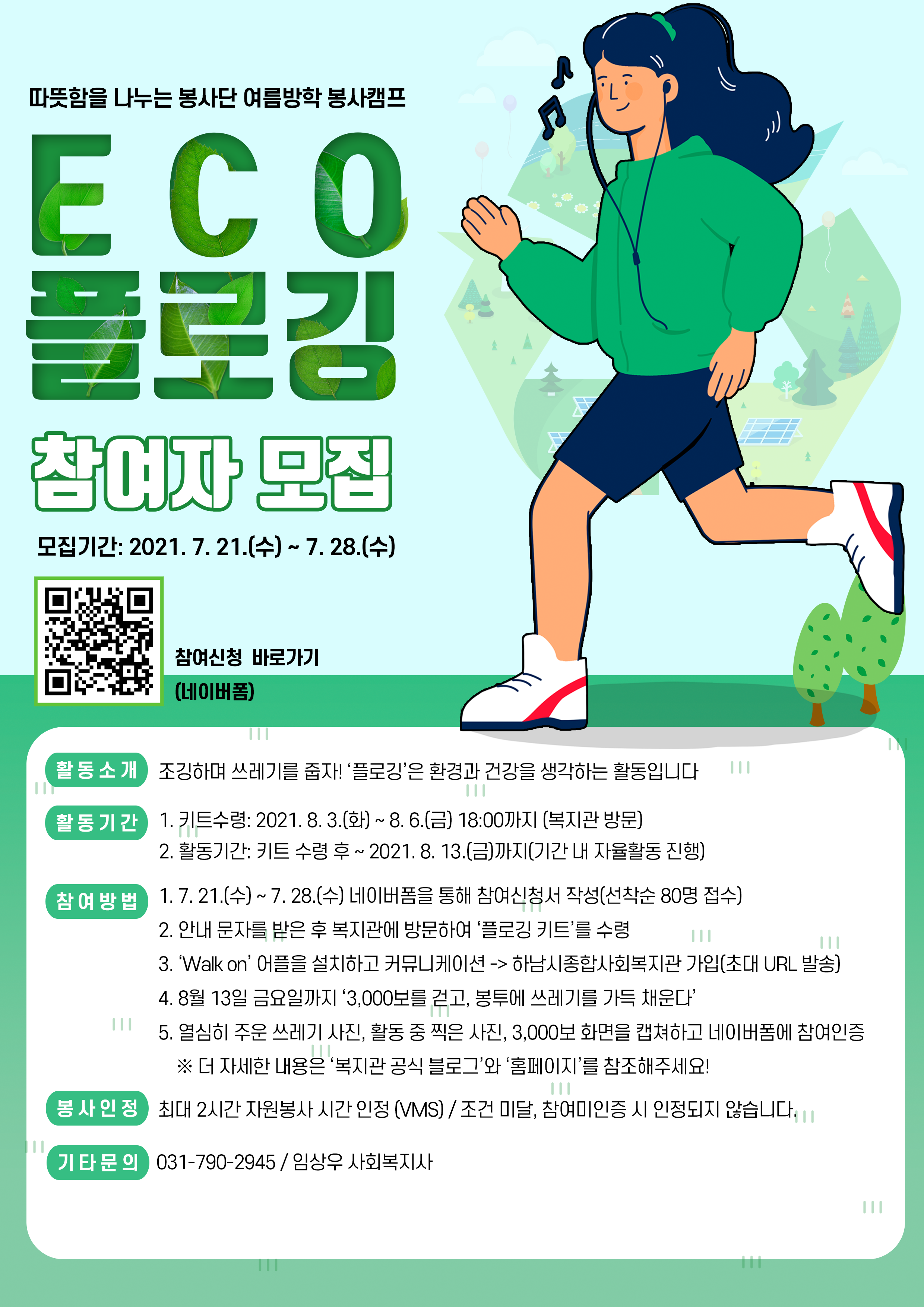 여름방학 봉사캠프 'ECO 플로깅' 참여자 모집