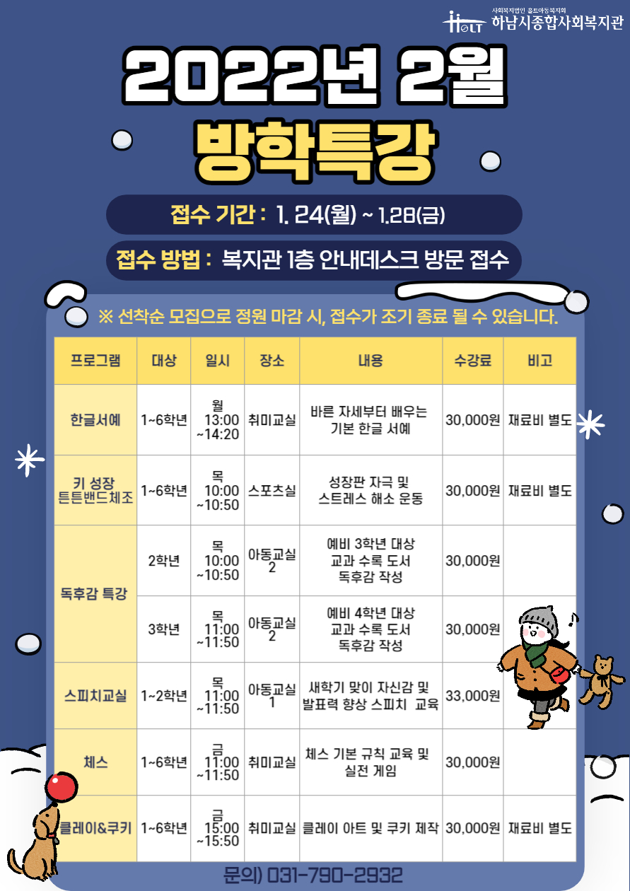 2022년 2월 방학특강은 초등학생 대상으로 진행됩니다.