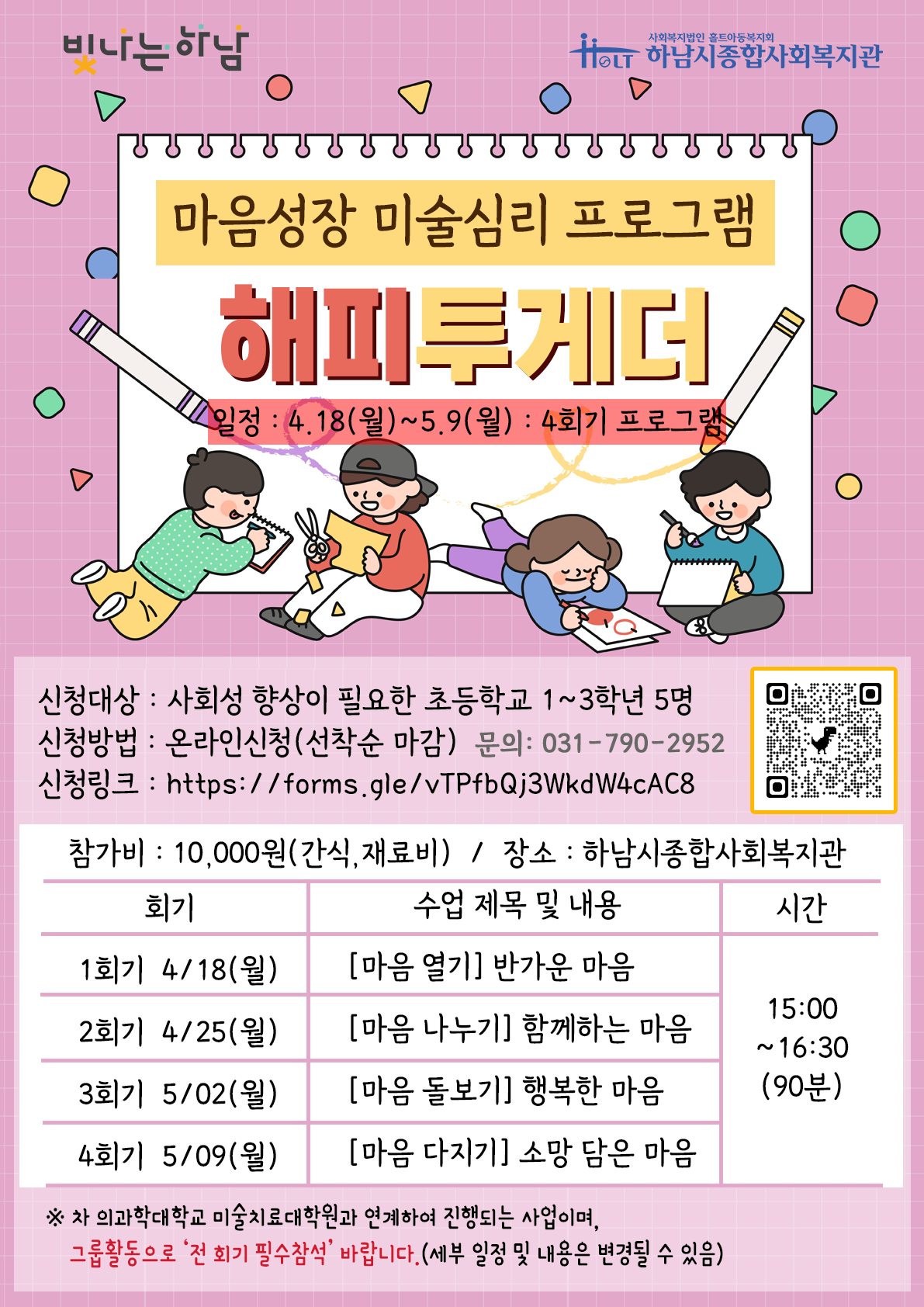 마음성장 미술심리 프로그램 "해피투게더" 를 실시할 예정입니다.