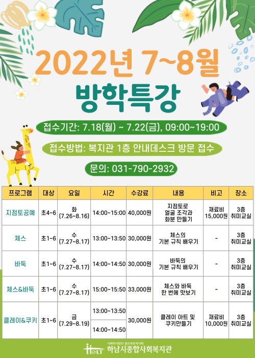* 방학특강은 초등학생 대상으로 진행됩니다.