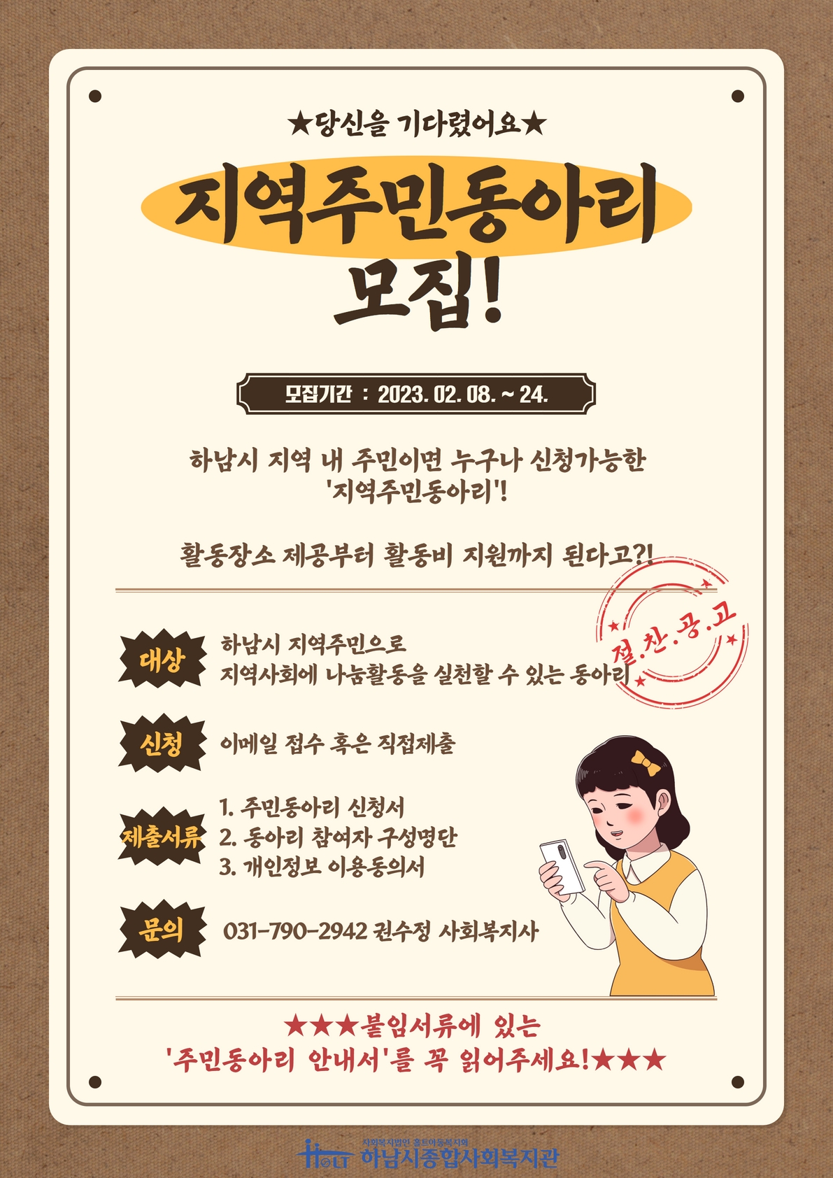하남시 내 지역주민이라면 누구나 신청가능한 지역주민동아리!