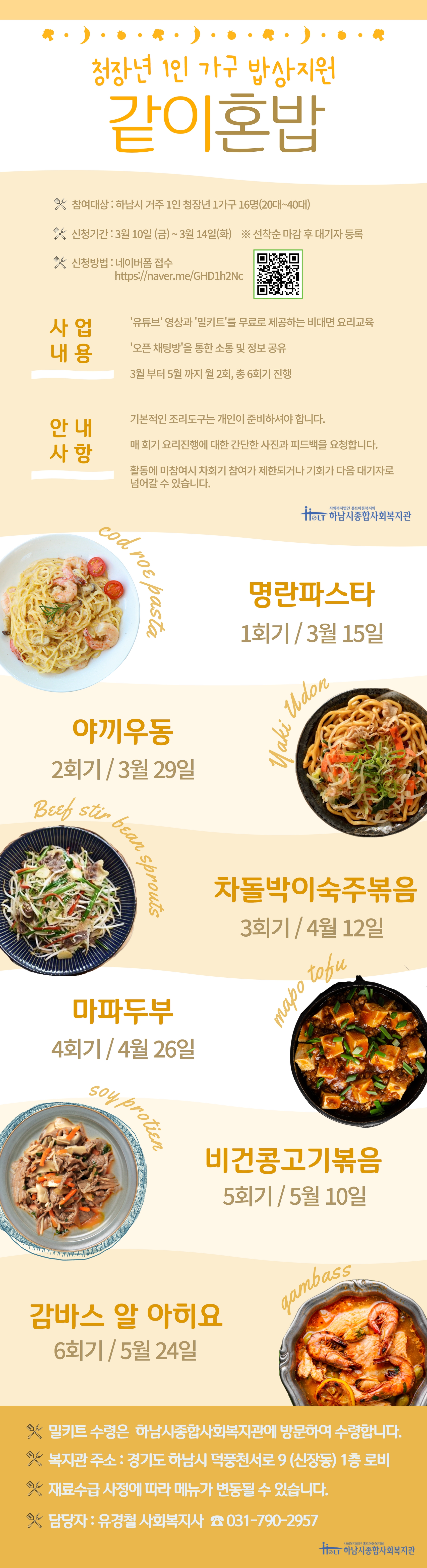 (모집완료)청장년 1인가구 밥상지원 '같이혼밥' 5기 모집