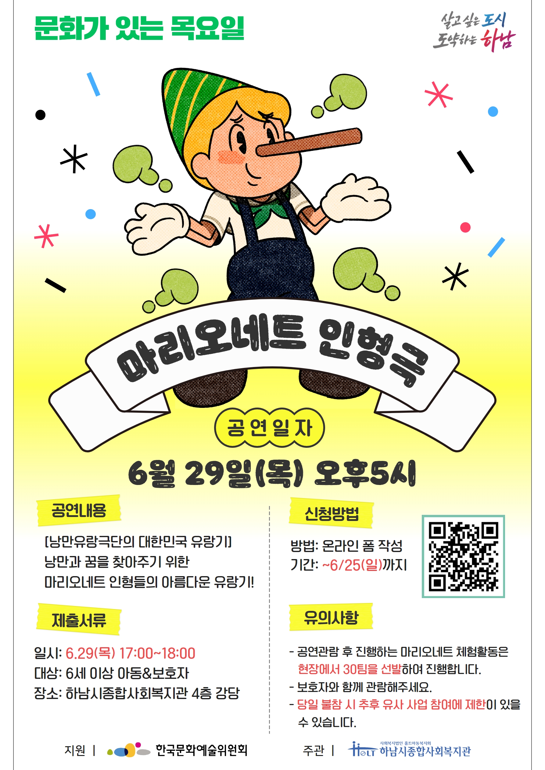 공연관람 후 30팀을 선발하여 마리오네트 체험활동도 가능하니