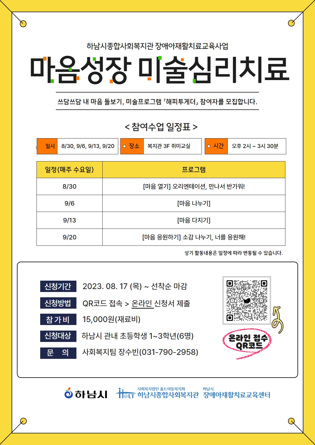 2023년 하남시종합사회복지관 장애아재활치료교육사업, 하반기 '마음 성장' 미술심리프로그램