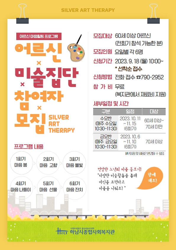 2023년 하남시종합사회복지관, 어르신 마음힐링프로그램 참여자 모집