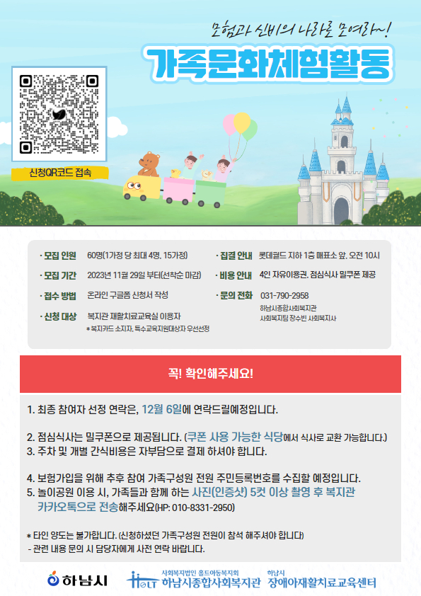2023년 하남시종합사회복지관 장애아재활치료교육사업 "가족문화체험활동"
