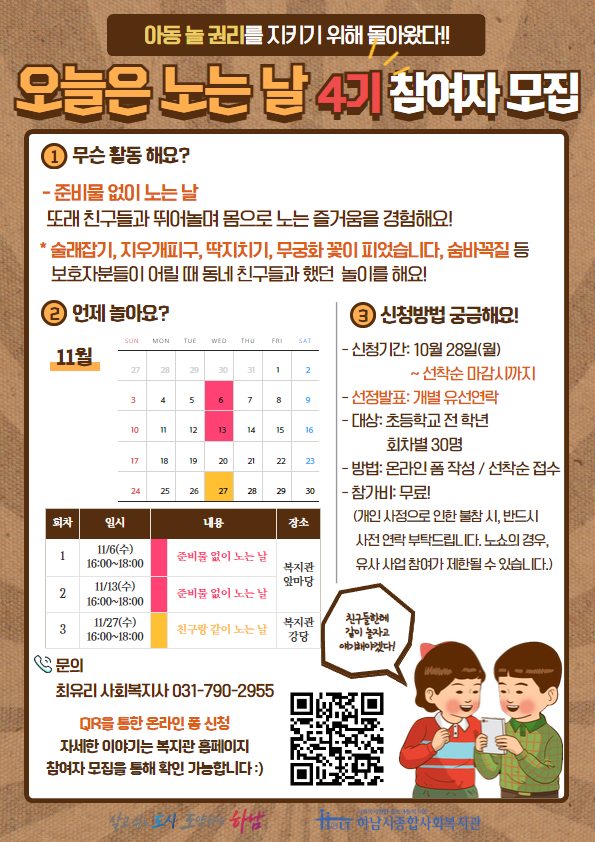 2024 아동권리 증진사업 '오늘은 노는 날' 4기 11월 참여자 모집을 진행합니다!