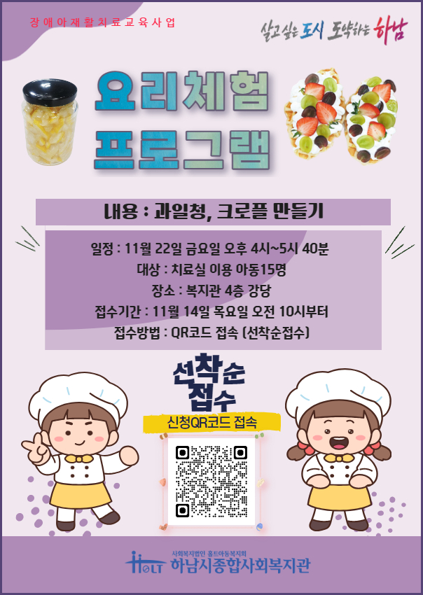 본 프로그램은 선착순으로 모집하며 참여인원 마감시 대기자로 신청될 수 있습니다.