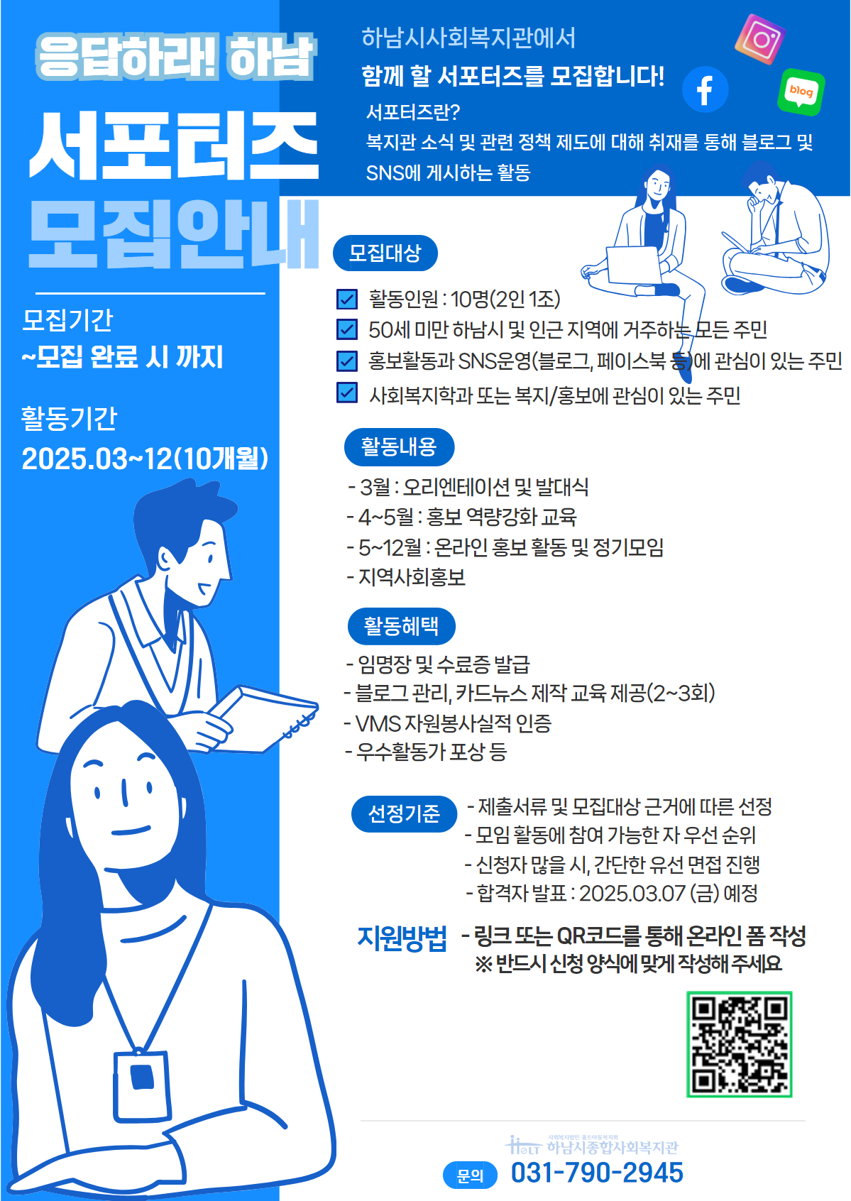 하남시종합사회복지관에서 뜨거운 열정을 지닌 홍보 서포터즈를 모집합니다!