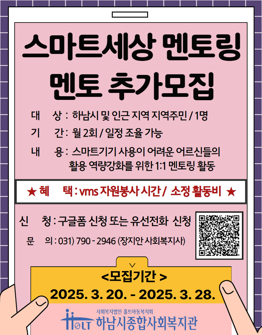 [하남시종합사회복지관] 2025년 스마트세상 <멘토> 추가모집