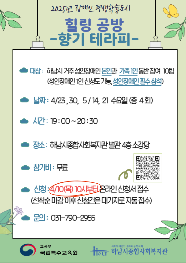 대상 : 하남시 거주 성인장애인 본인과 가족1인 동반 참여 10팀