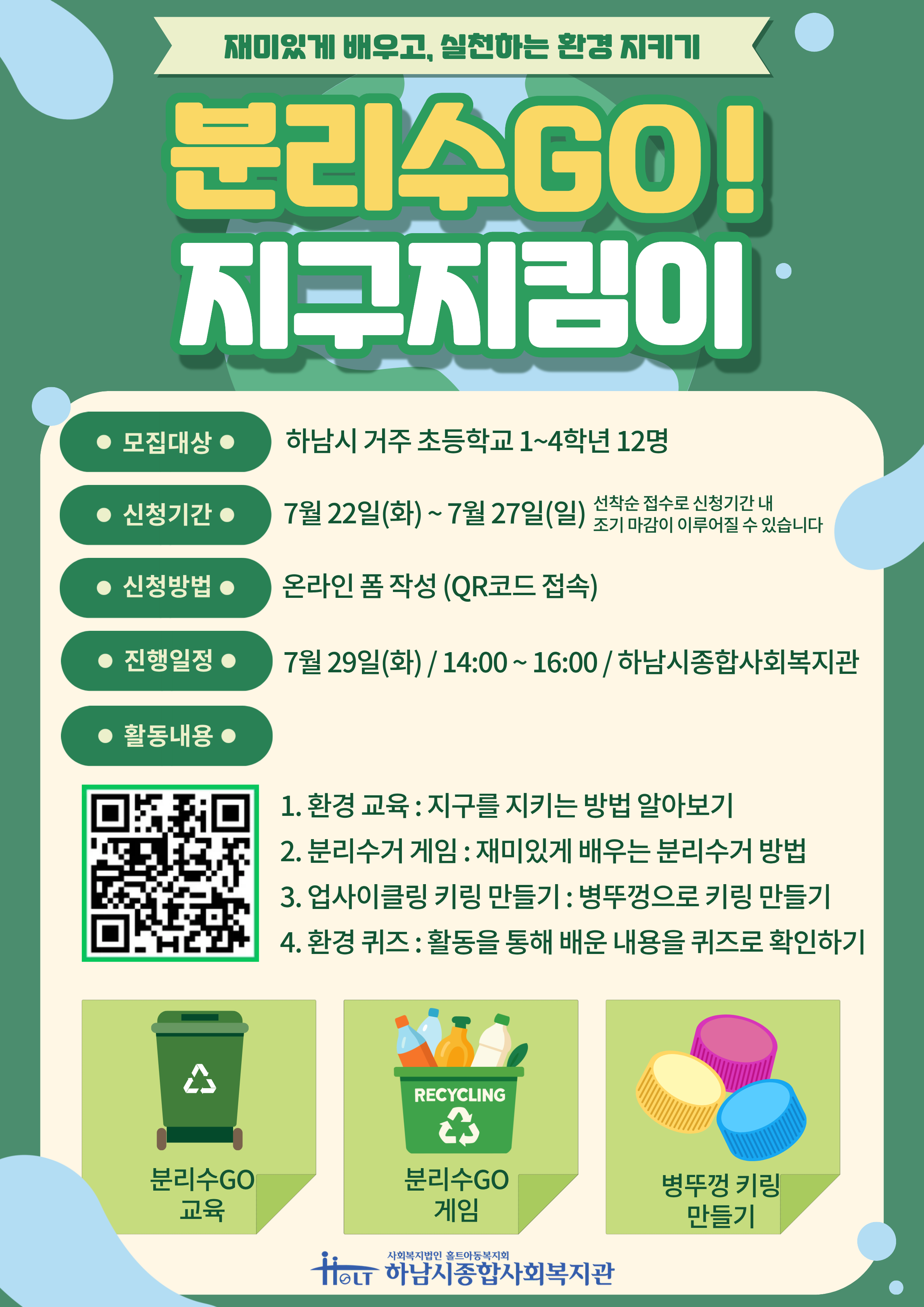 체험형 환경 교육 ‘분리수GO! 지구지킴이’ 프로그램을 진행합니다.