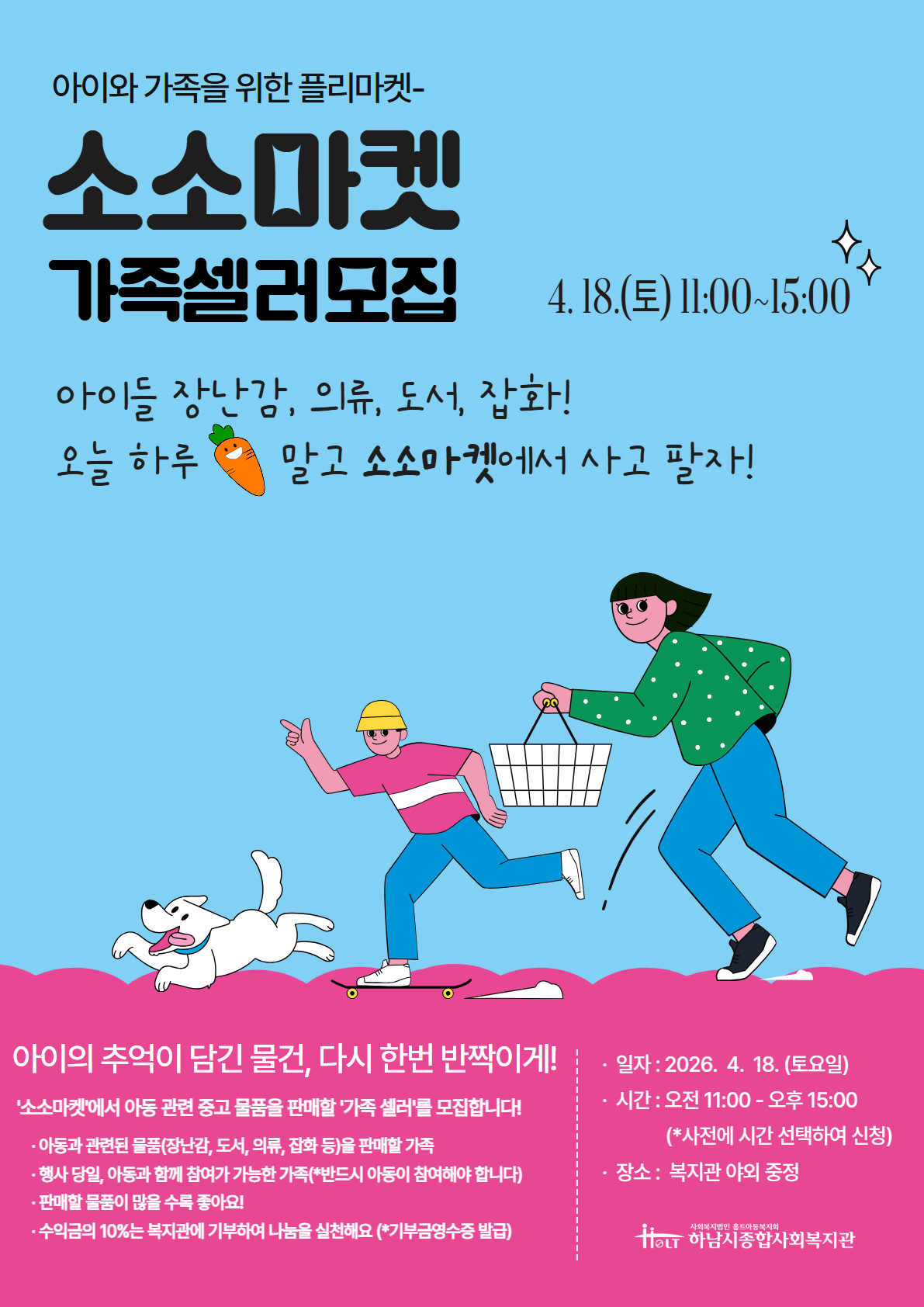 여러분은 아이와 함께 판매할 물품만 지참하세요!