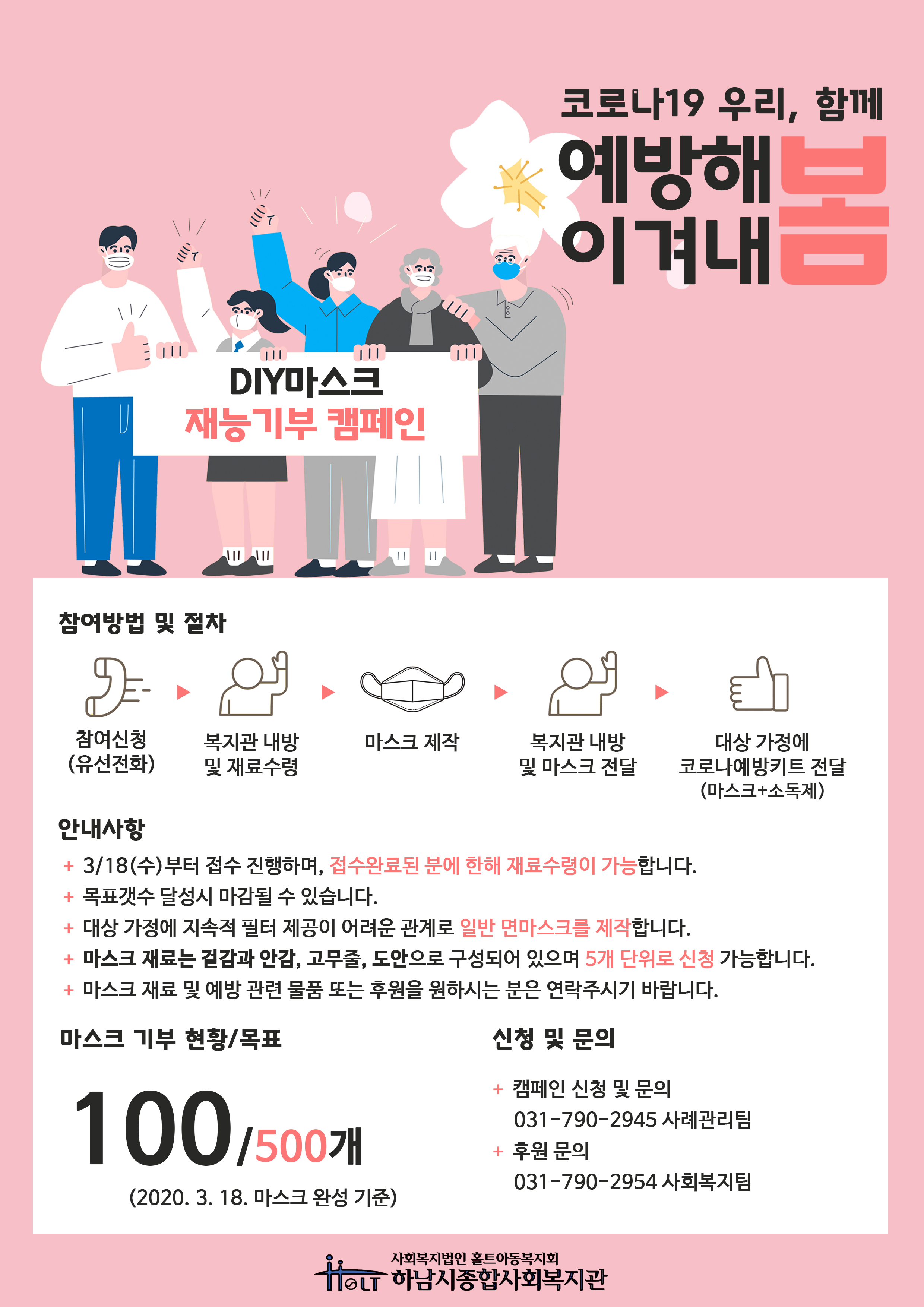 마스크 재능기부 나눔으로 코로나19예방에 동참해주실 지역주민을 모집하고 있습니다