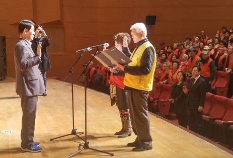 대상으로 하남문화예술회관 검단홀에서 합동 발대식 및 활동교육을 실시하였습니다. 하남시종합사회복지관과 대한노인회