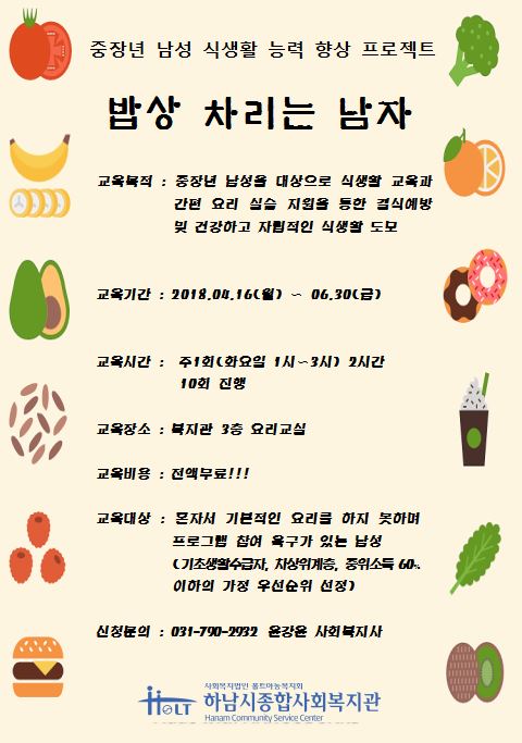 '밥상 차리는 남자' 프로그램 참여자 모집 2018-03-26 조회수 12,152 착한이웃 현판 전달식(한국전력공사 동서울전력지사) 2018-03-22 조회수 11,702 착한이웃 현판 전달식(한국수자원공사 팔당권지사) 2018-03-20 조회수 11,820 착한이웃 현판 전달식(구림장어) 2018-03-20 조회수 11,860 손사랑 나눔 동아리 후원금 전달식 2018-03-20 조회수 11,816 하남시종합사회복지관 자원봉사단 모집 2018-03-20 조회수 12,530 착한이웃 현판 전달식(지호한방삼계탕) 2018-03-16 조회수 12,149 2018 노인일자리 및 사회활동 지원사업 발대식 및 활동교육 실시완료 2018-03-16 조회수 12,151 저소득가정 돕기 유기농 아로니아 쨈 판매 2018-03-15 조회수 12,843