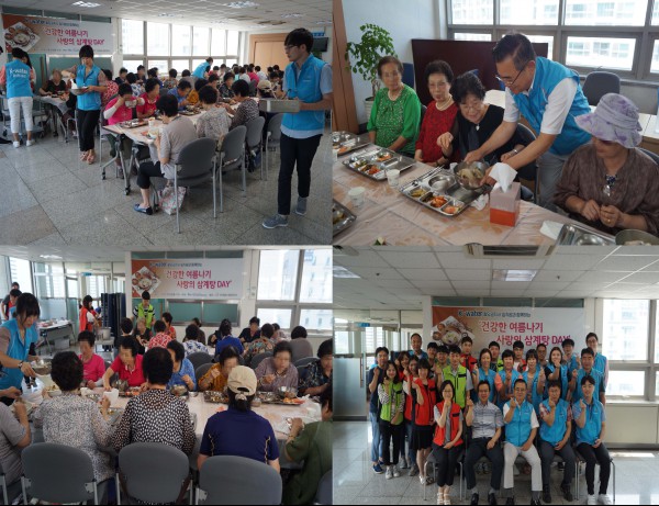 2018 한국수자원공사 팔당권지사 임직원과 함께하는 건강한 여름나기 사랑의 삼계탕 Day 작성일 : 2018.07.16 | 조회수 : 11337 일 시 : 2018년 07월 16일(월) 11:30~12:30장 소 : 복지관 4층 강당, 로비 수자원공사 팔당권지사의 후원과 봉사로 여름철 무더운 날씨로 인한 체력소모를 막고, 영양보충과 원기회복에 도움을 드리기 위해 100명의 어르신에게 삼계탕을 대접하는 "건강한 여름나기 사랑의 삼계탕 Day" 행사를 진행하였습니다.사회공헌활동을 통해 공공기관으로서의 사회적 책임을 다하는 수자원공사 팔당권지사 관계자 분들께 감사의 말씀을 전합니다.