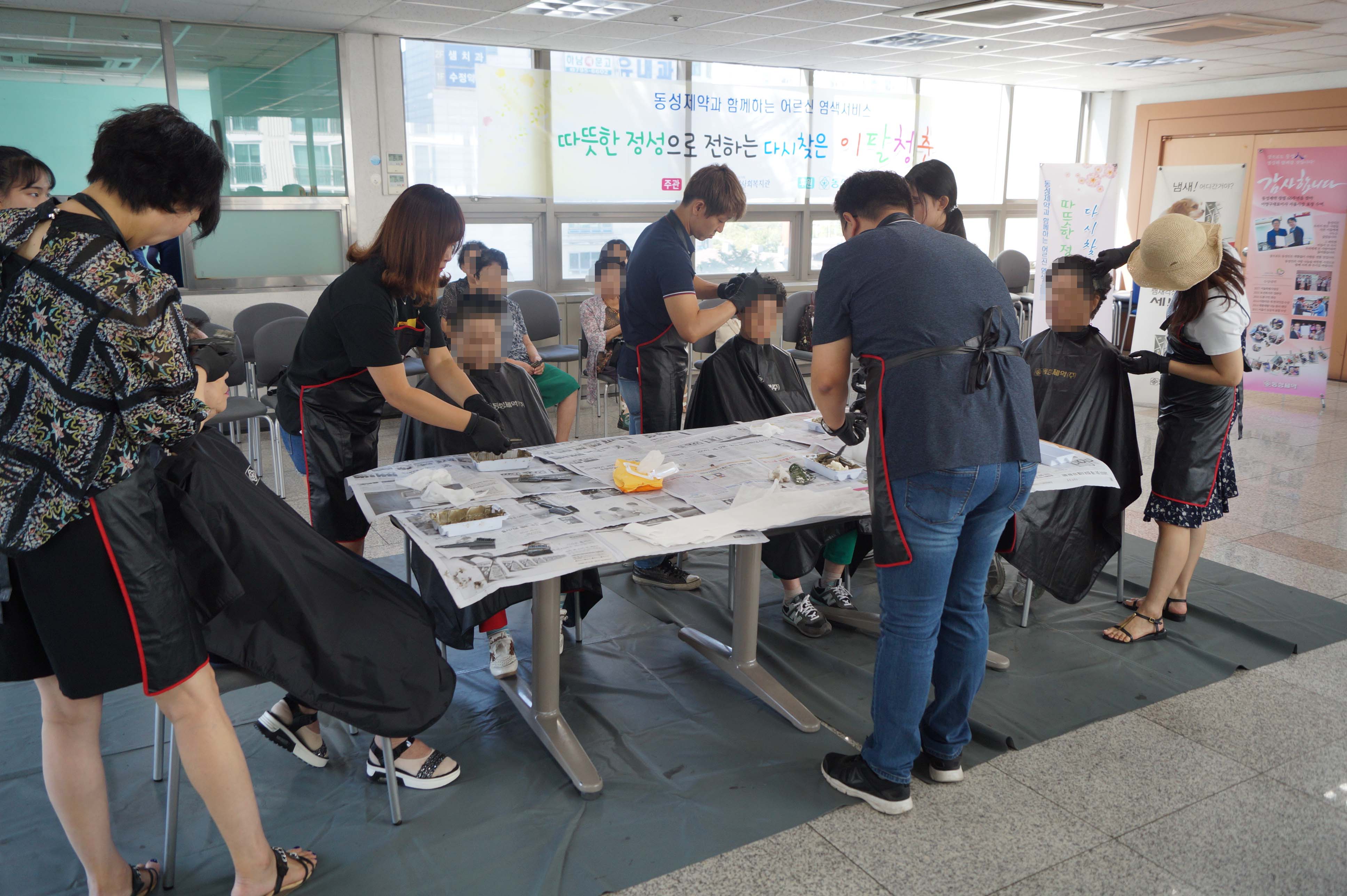 동성제약과 함께하는 어르신 염색서비스 '다시 찾은 이팔청춘' 작성일 : 2018.08.18 | 조회수 : 11787 일 시 : 2018년 08월 18일(토) 10:00~12:00장 소 : 복지관 4층 로비 동성제약 염색봉사단과 함께 '다시 찾은 이팔청춘' 무료 염색 지원 서비스를 진행하였습니다.동성제약 염색봉사단 15명이 참여하였으며, 20명의 인원에게 아름다운 청춘을 선물하였습니다.행사를 위해 아낌없이 후원과 봉사를 해주신 동성제약 염색봉사단 관계자 분들께 감사의 말씀을 전합니다.