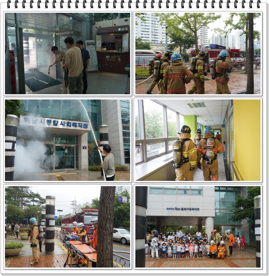 등의 대피훈련, 소방시설을 활용한 자위소방대의 초기 진화 활동, 하남시 소방대원들의 출동 및