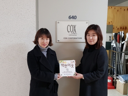 착한이웃 현판전달식(콕스) 작성일 : 2019.01.31 | 조회수 : 11111 2019년 1월 31일(목) 14:00~15:00 콕스와 함께 착한이웃 현판 전달식을 진행하였습니다.착한이웃은 관내 기부문화 확산 및 나눔 문화 형성을 위해 복지관과 지속적으로 사회공헌 활동을 수행한 업체에게 전달되고 있습니다.하남시종합사회복지관은 앞으로 정기적으로 복지관과 함께 사회공헌 및 후원을 해주고 있는 업체 및 기업을 대상으로 착한이웃 캠페인을 지속적으로 진행하여 그 수를 늘려갈 예정입니다. 많은 관심 부탁드립니다.
