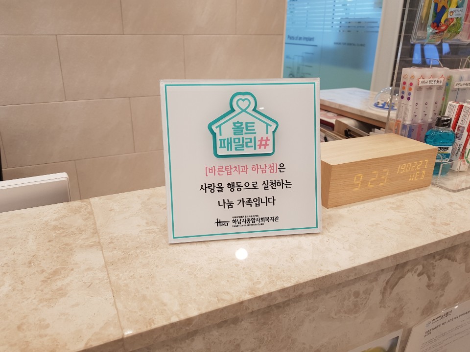 [바른탑치과 하남점]과 함께 홀트패밀리# 현판 전달식을 진행하였습니다.