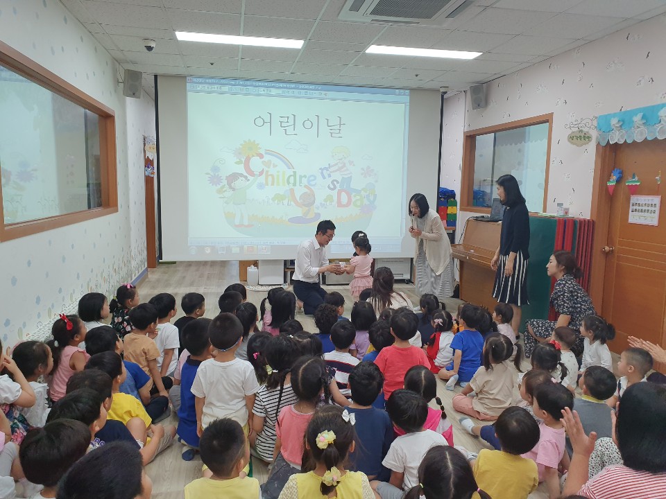 은방울어린이집 후원금 전달식 작성일 : 2019.06.03 | 조회수 : 11687 2019년 6월 3일(월) 10:00~11:00 은방울어린이집 원아들 85명이 어린이날을 맞이하여한마음 한뜻으로 희망 나눔 저금통에 마음을 담아 복지관에 기부하였습니다.기부된 소중한 후원금 전액은 꼭 필요한 곳에 사용하도록 하겠습니다.따뜻한 후원에 다시한번 감사드립니다.